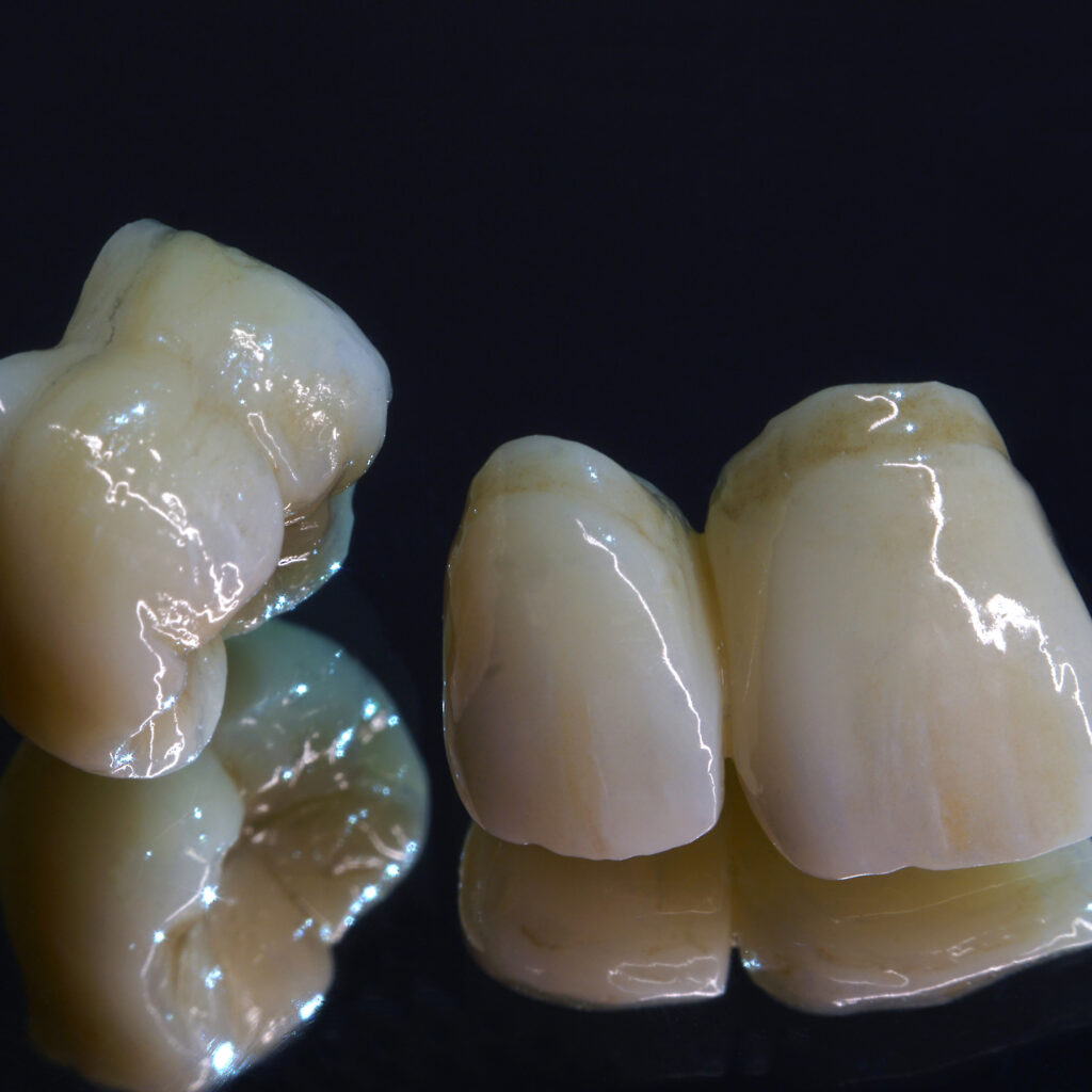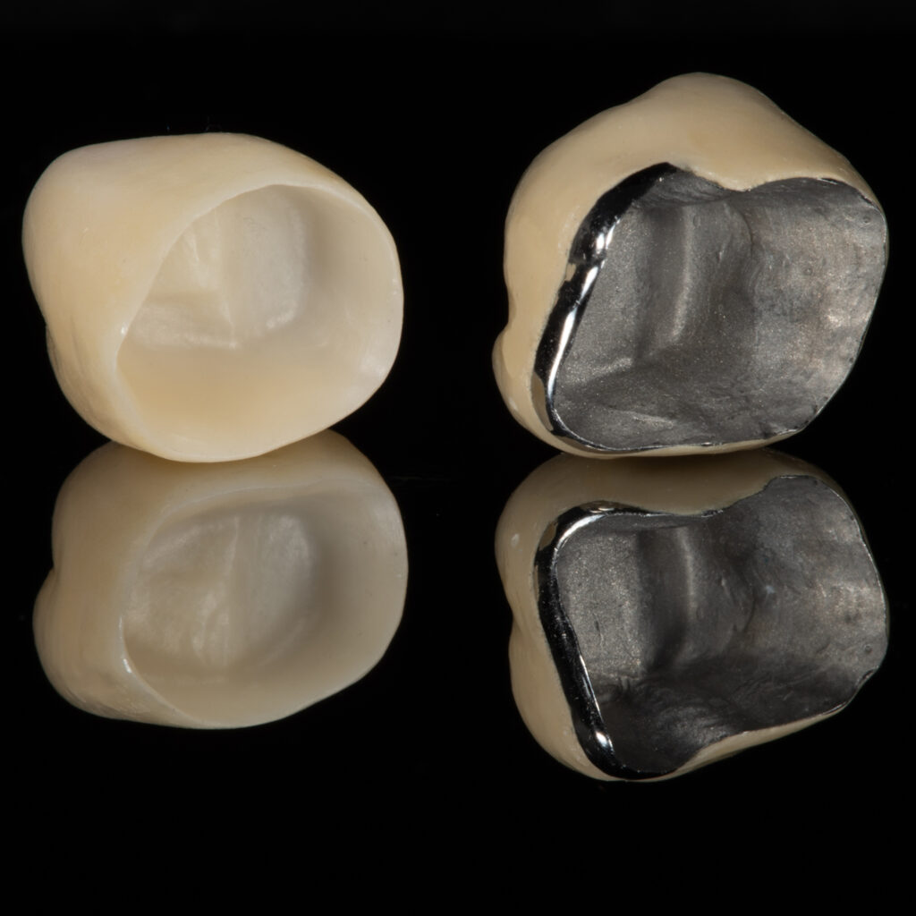 表面がセラミックで作られているため、自然に近い白さと透明感があります。また、内側は強度の非常に高いジルコニアなので、金属アレルギーの方でも安心して使用できます。