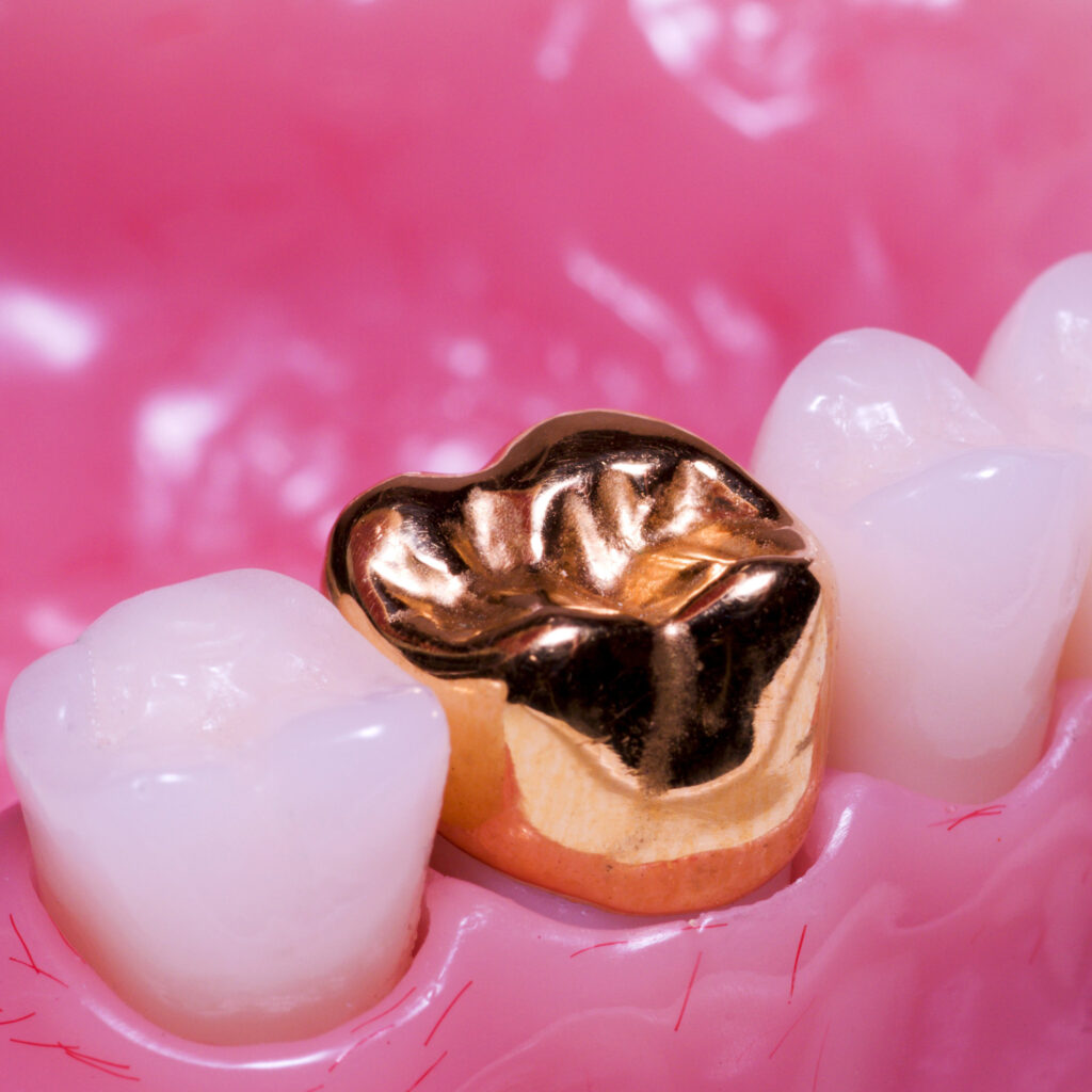 ゴールドはe.maxやジルコニアのように天然歯のような色ではありませんが、柔らかく伸びも良いため、歯と被せ物との段差や隙間が小さく、虫歯や歯周病になりにくい特徴があります。また錆びにくく、金属の溶け出しもほとんどありません。