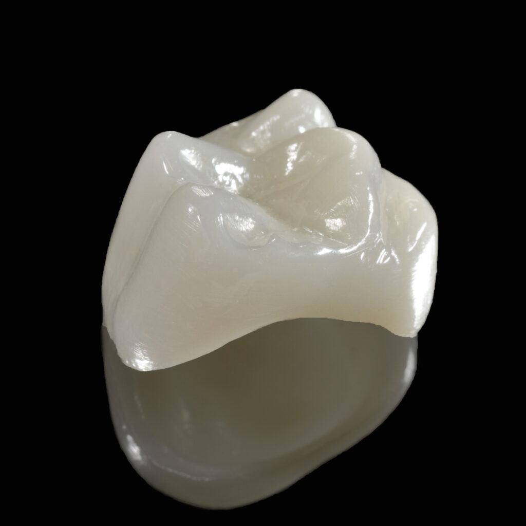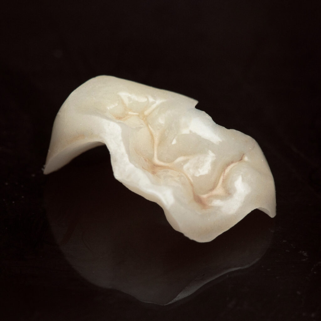 強度が高いので、噛む力の強い方や、歯ぎしりの癖のある方、また、力のかかりやすい奥歯にも使用でき、ピッタリと合うので、治療後も虫歯になりにくいというメリットがあります。