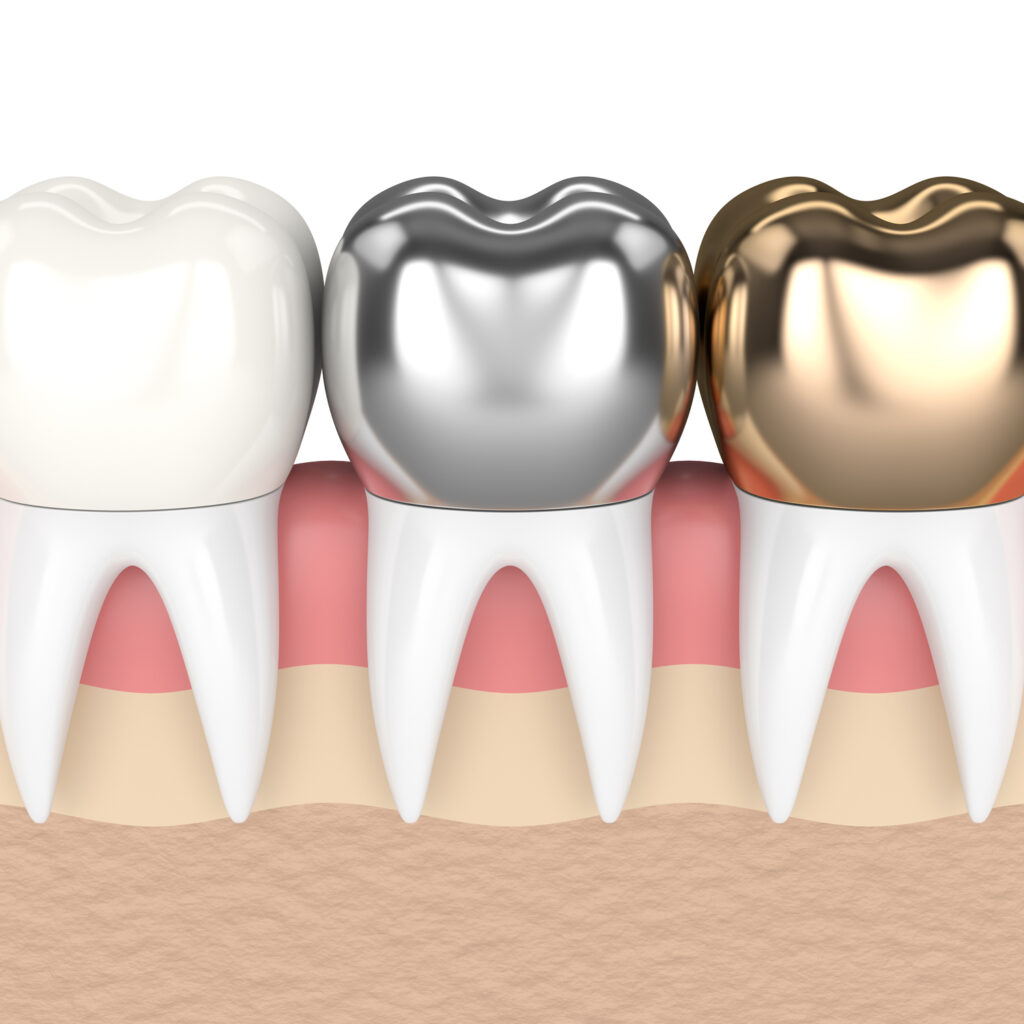 クラウンとは修復物(補綴物)の中でも「被せ物」のことを指します。歯全体を覆う被せ物のことです。虫歯が大きく歯の全周に及ぶ場合や、歯の神経を取って削った部分が大きい場合など、インレーではまかないきれない時に使用されます。