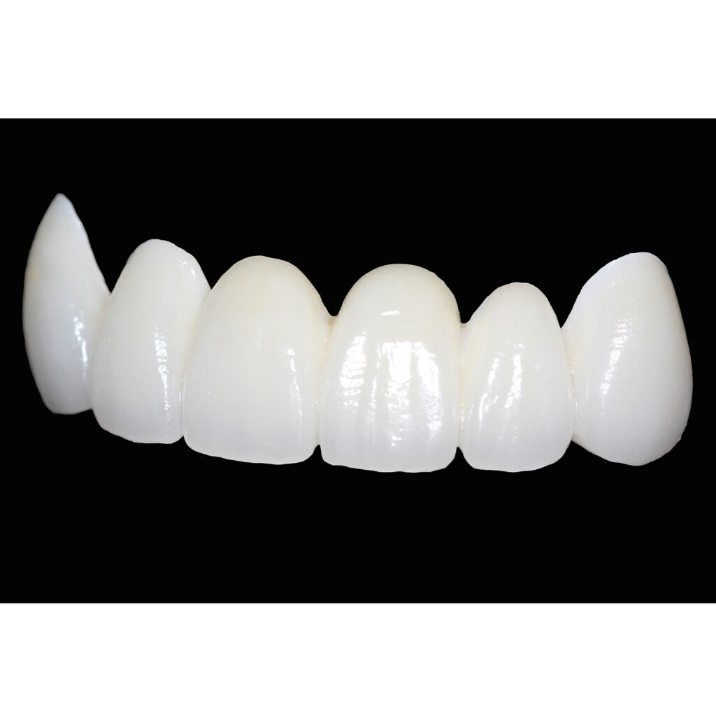 セラミックの中で最も透明性が高い素材であり、豊富な色調で天然歯のような透明感・審美性を再現することができます。また、金属アレルギーを起こさないので生体が異物として認識しない材料であり、安全で耐熱性にも優れています。